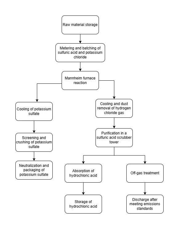 La ligne de production d’engrais sulfate de potassium utilise le procédé Mannheim, une méthode largement reconnue pour la fabrication d’un sulfate de potassium de haute qualité. Cet engrais potassique, sans chlore, joue un rôle essentiel dans l’amélioration de la qualité des cultures et le renforcement de la résistance des plantes au stress. La ligne utilise principalement le chlorure de potassium et l’acide sulfurique concentré pour produire efficacement un sulfate de potassium adapté aux besoins agricoles.